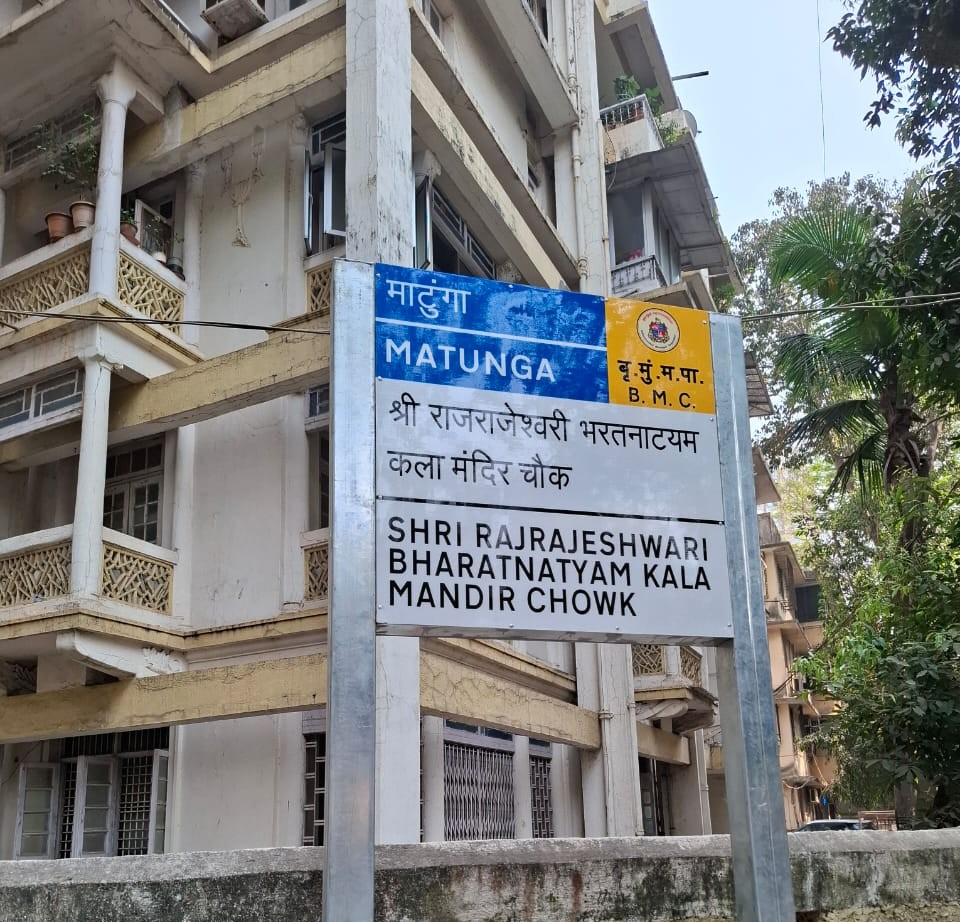 A proud and historic moment ! Sri Rajarajeswari Bharatha Natya Kala Mandir Chowk in Matunga (E), near the flower market, has been officially named by the BMC!
